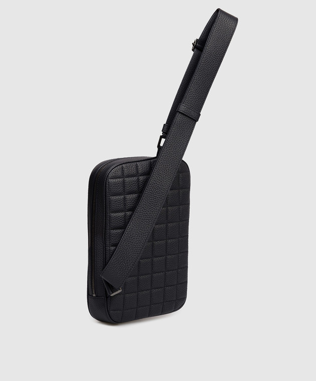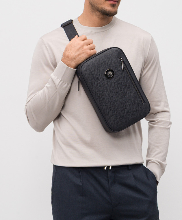 Синяя кожаная сумка-слинг с эмблемой с рутениевым покрытием