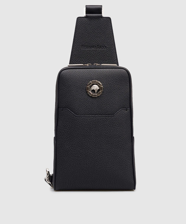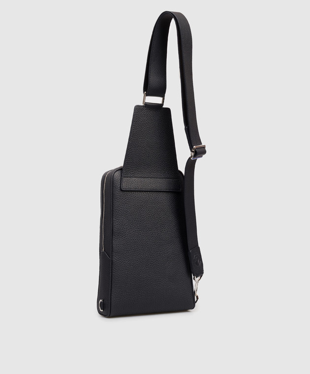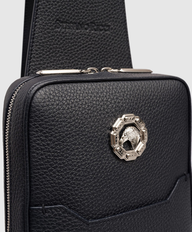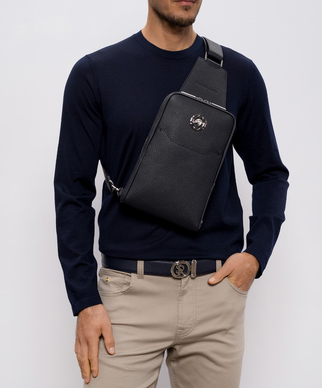 Синяя кожаная сумка-слинг с логотипом и эмблемой