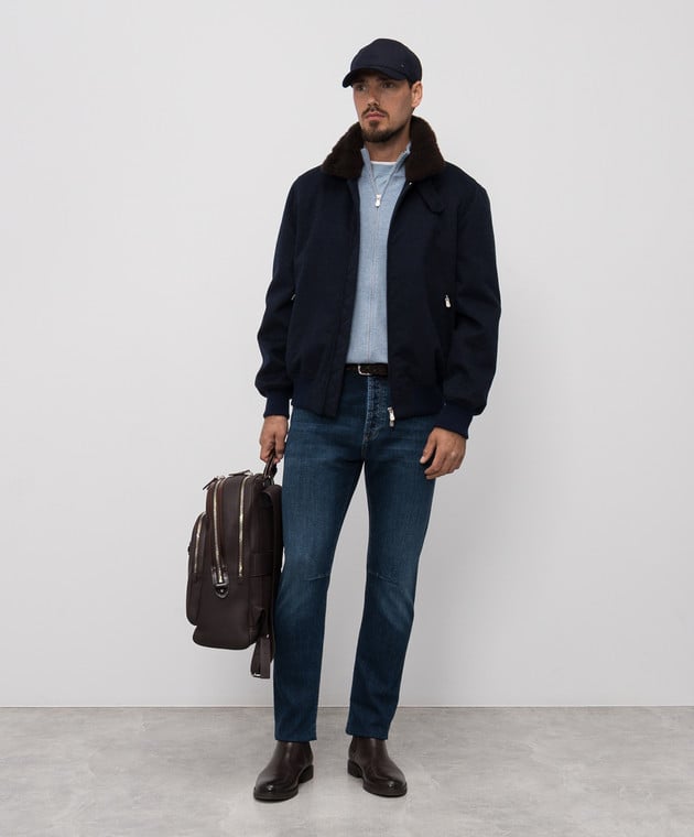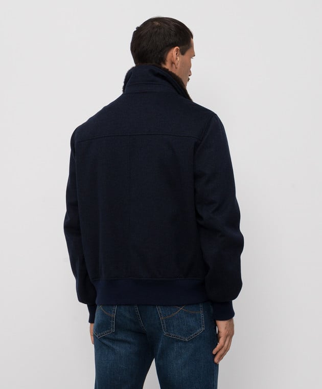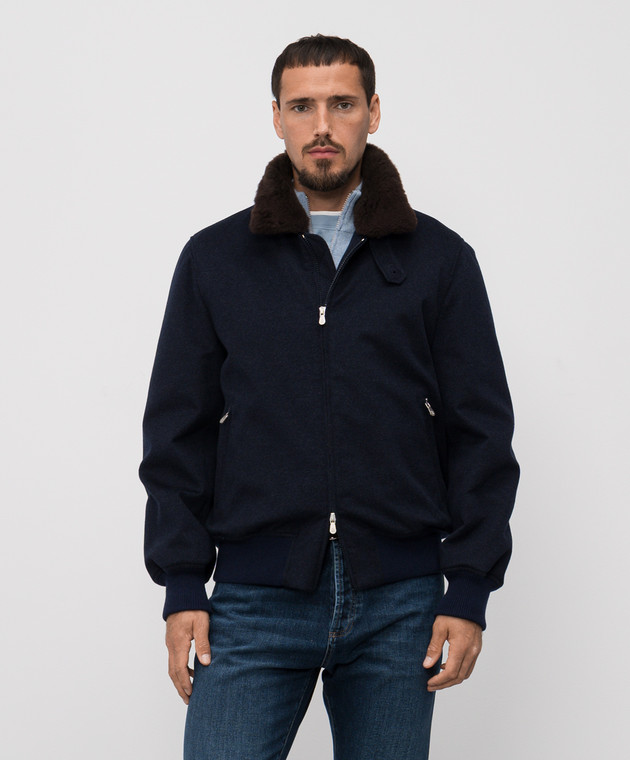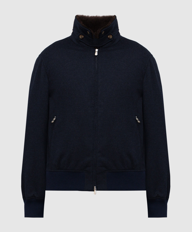 Синяя куртка из кашемира с овчиной