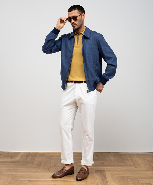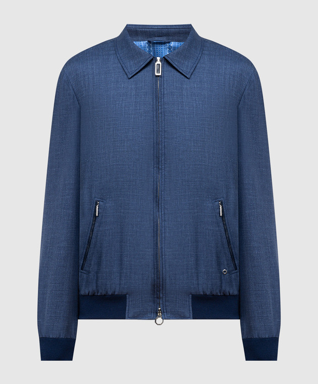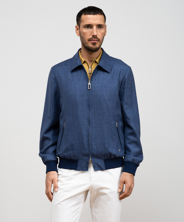 Синяя куртка из кашемира, шелка и льна