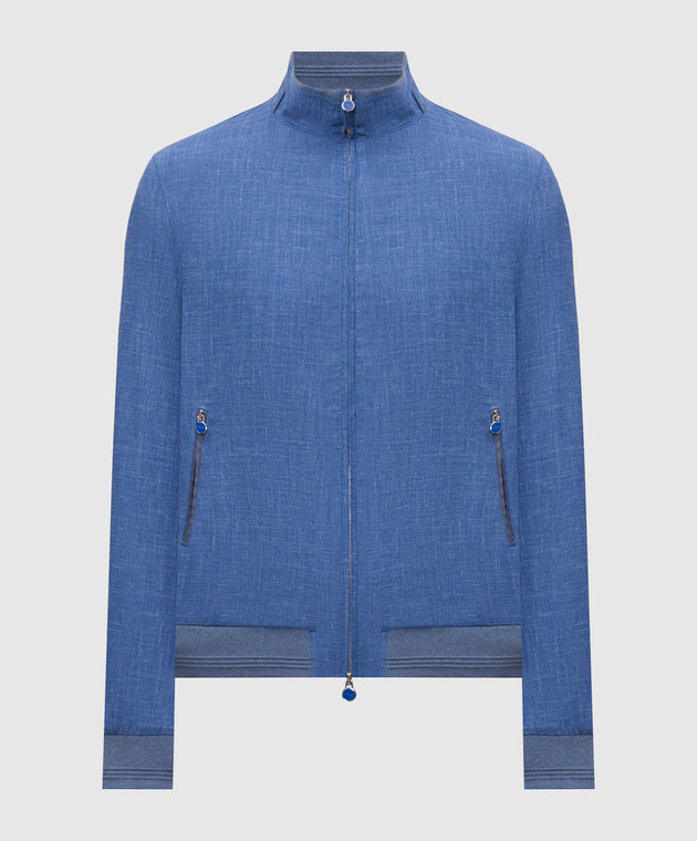 Синяя куртка из шерсти, шелка и льна