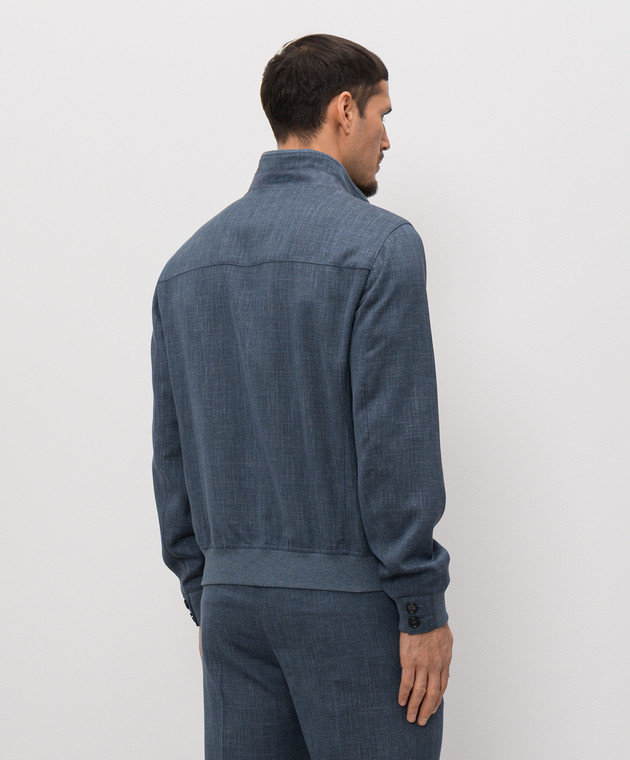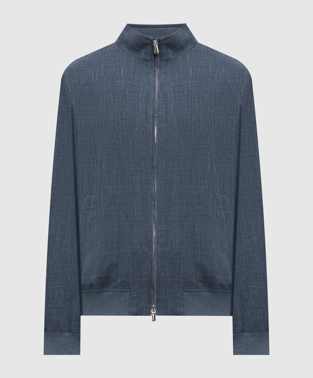 Синяя куртка из шерсти, шелка и льна