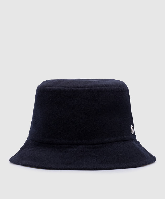 Синяя панама из шерсти с металлической эмблемой в виде головы орла