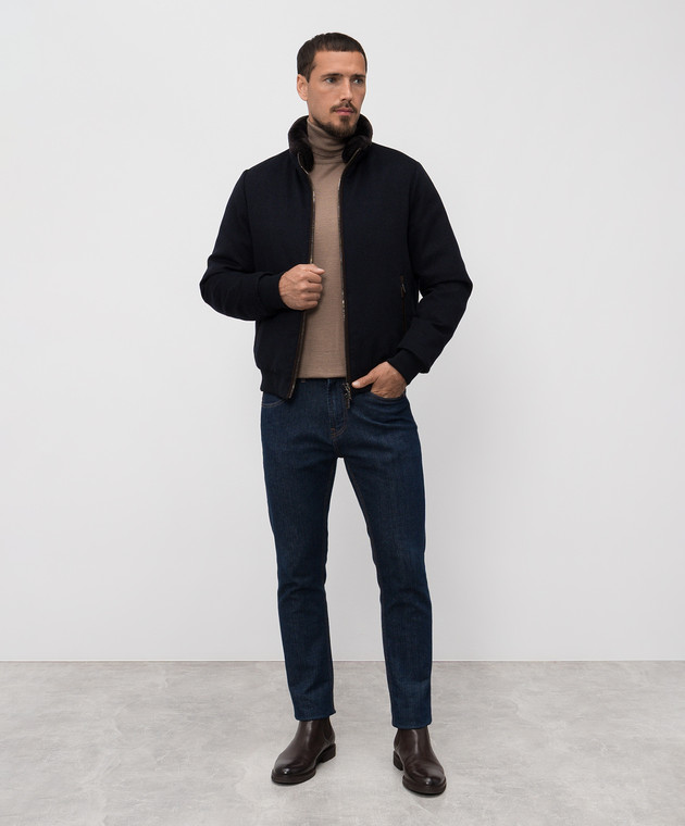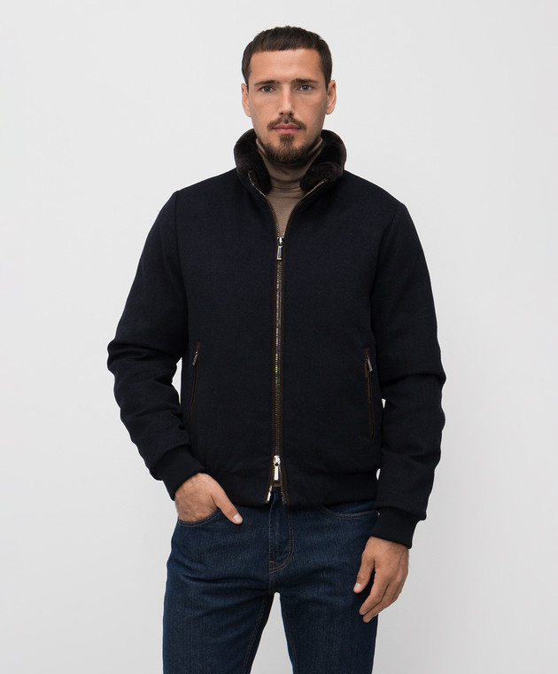 Синяя пуховая куртка BELLATI из шерсти и кашемира с овчиной