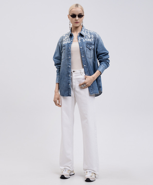 Синяя рубашка джинсовая с принтом надписи