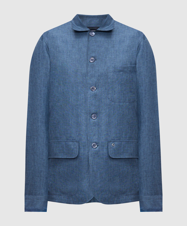 Синяя рубашка из льна, шерсти и шелка