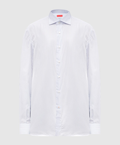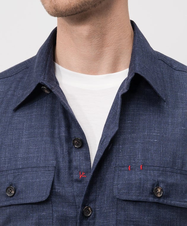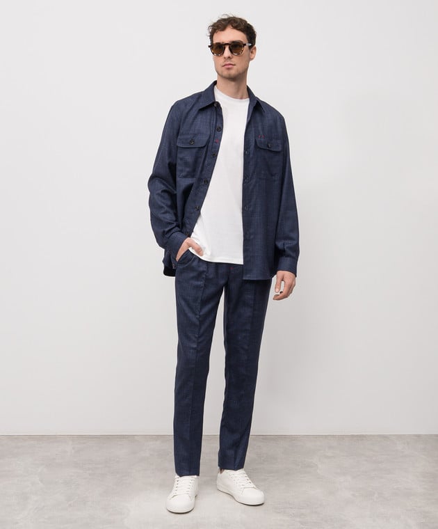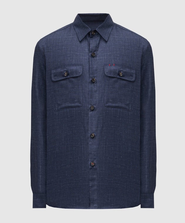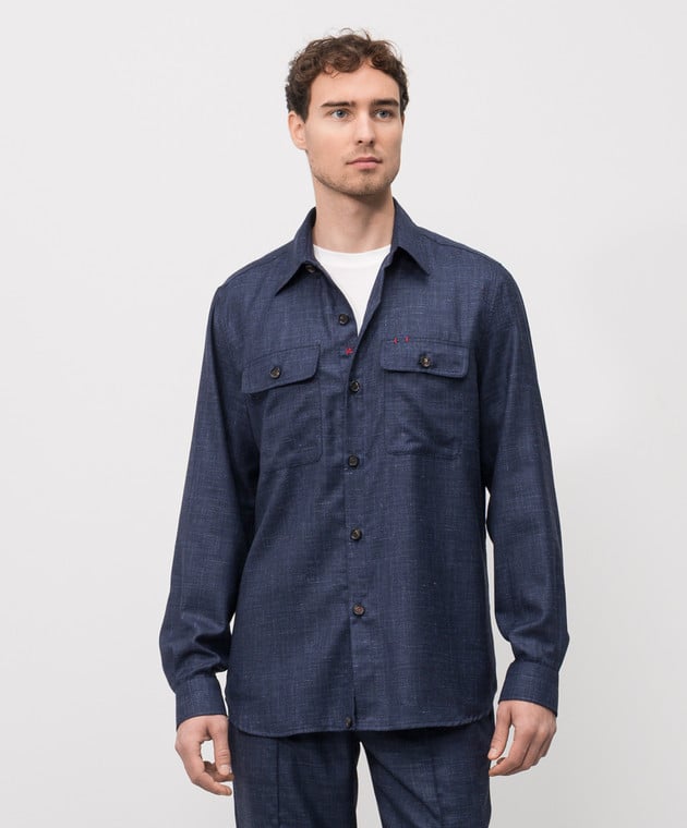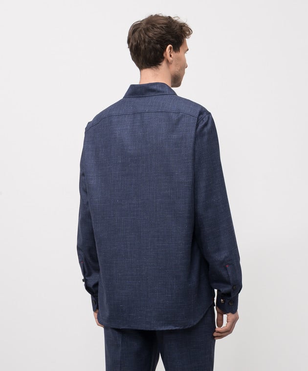 Синяя рубашка из шерсти, кашемира, шелка и льна