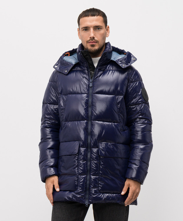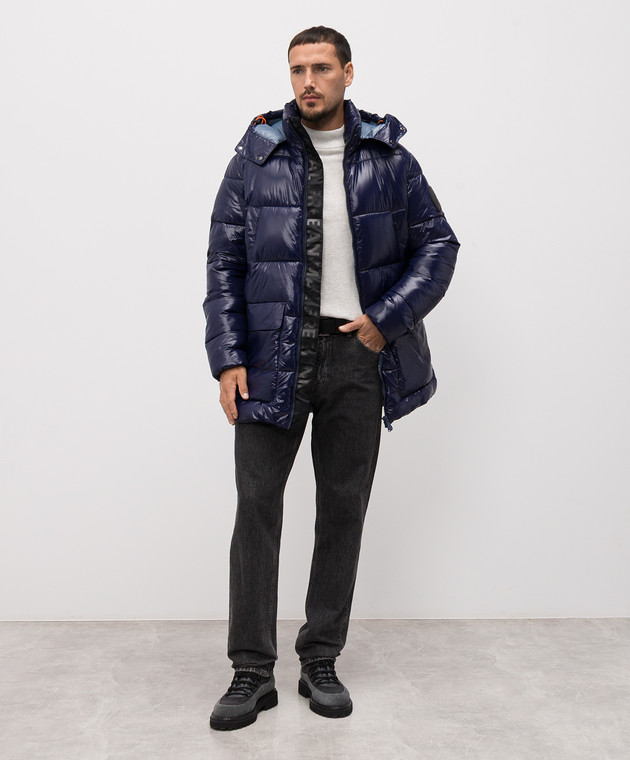Синяя стеганная куртка с нашивкой логотипа