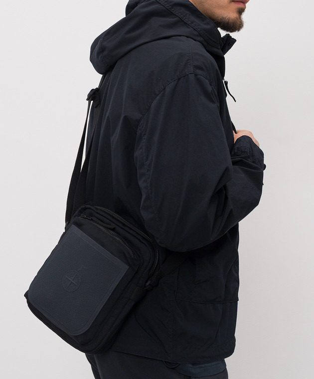 Синяя сумка с фактурным логотипом
