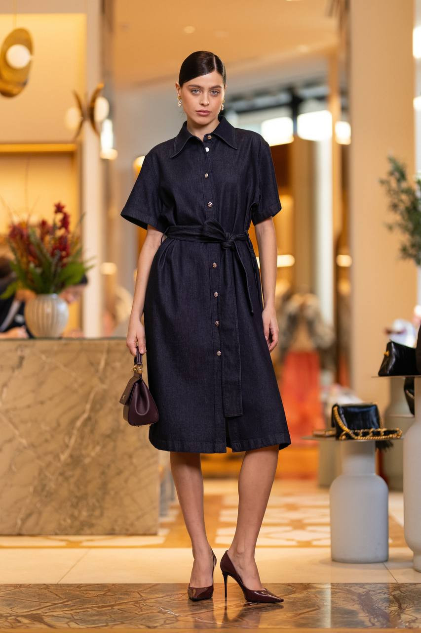 Синее джинсовое платье-рубашка