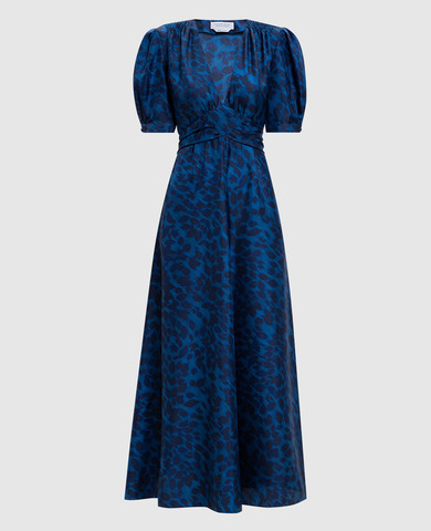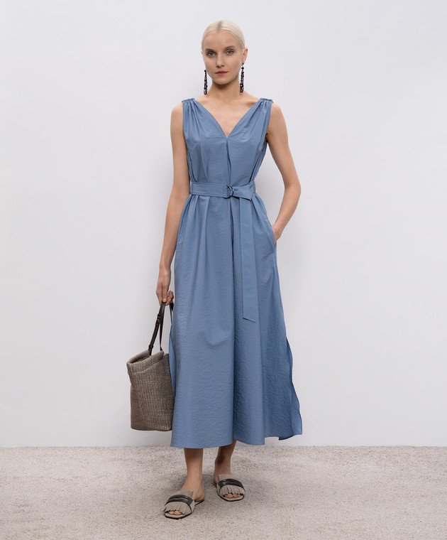 Синее платье миди с цепочкой мониль