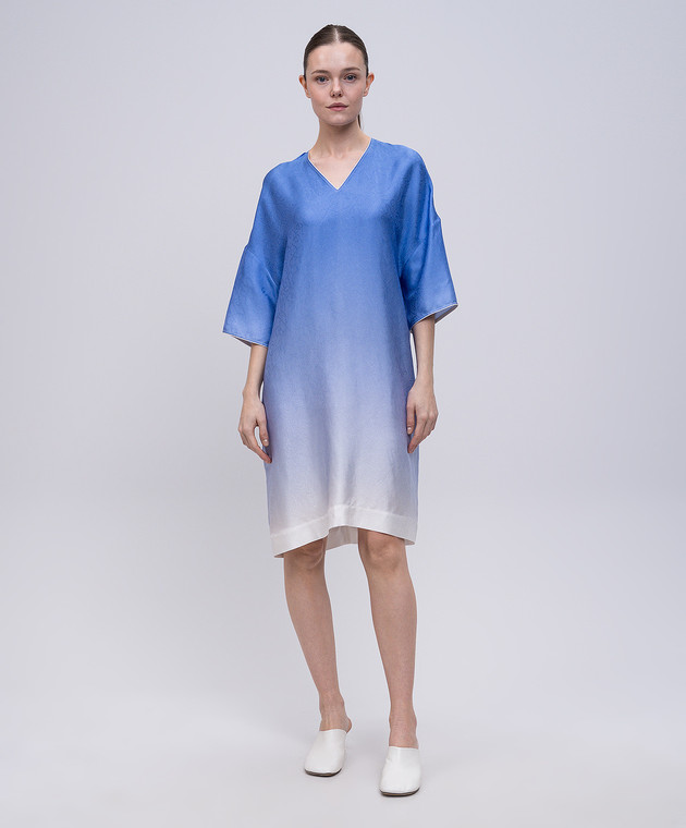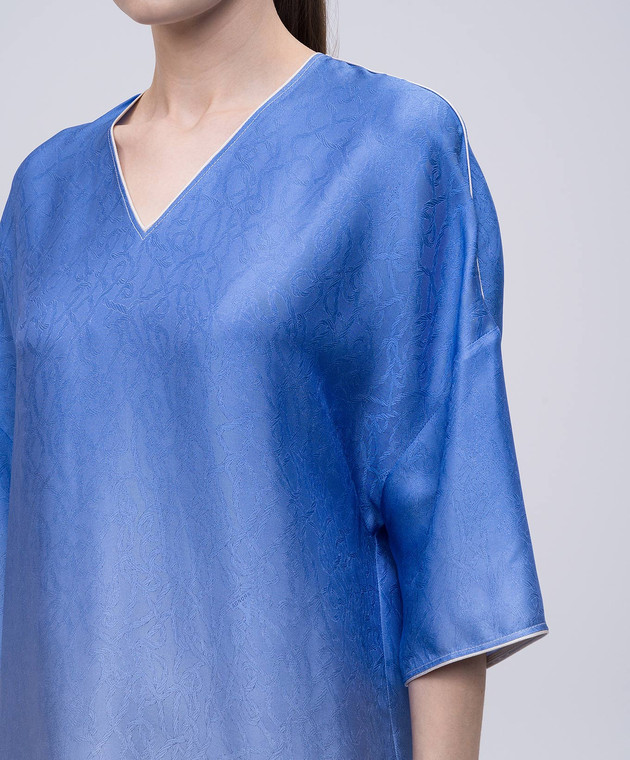 Синее платье с шелком в узоре
