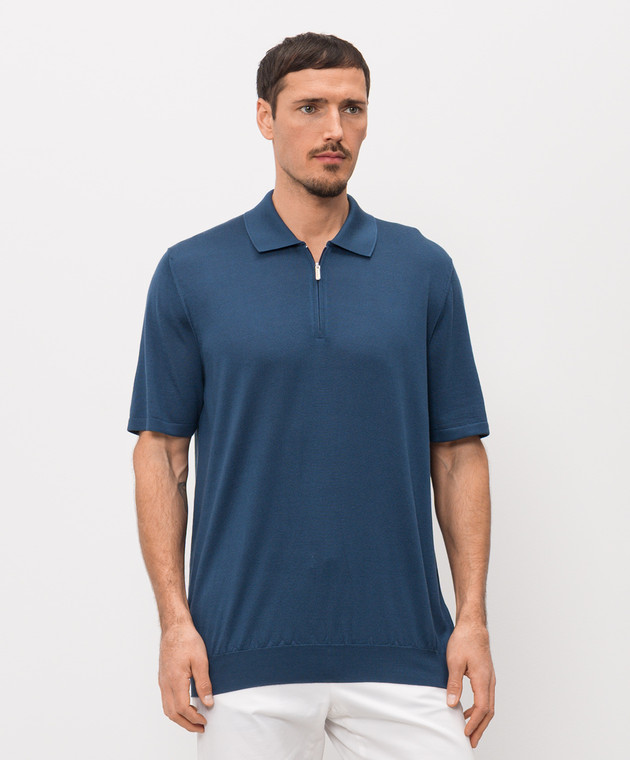 Синее поло из шелка