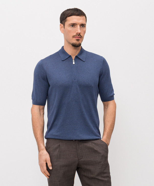 Синее поло из шелка
