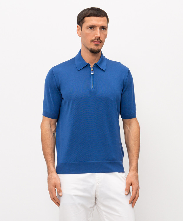 Синее поло из шелка