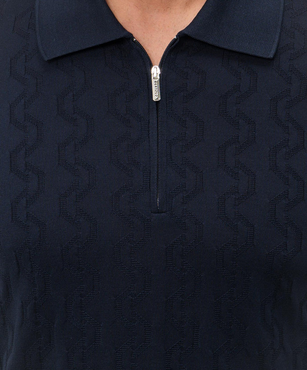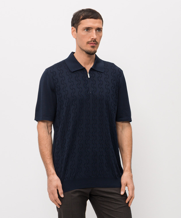 Синее поло из шелка в узор