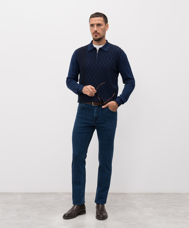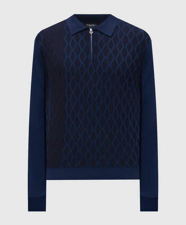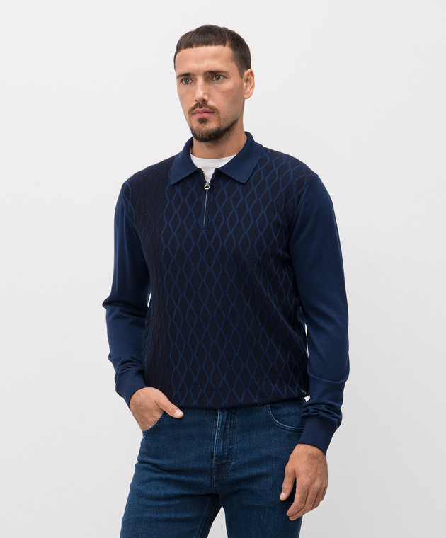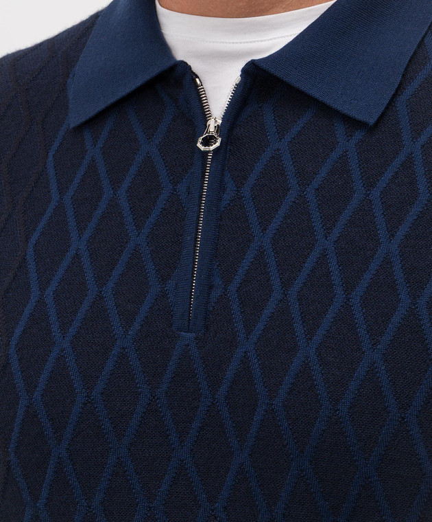 Синее поло из шерсти и кашемира с молнией