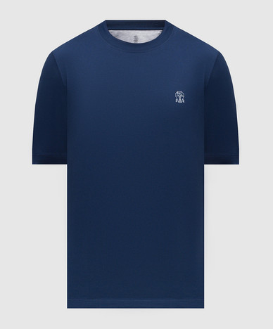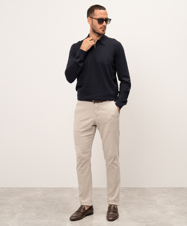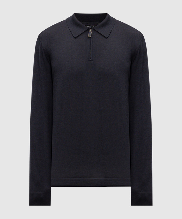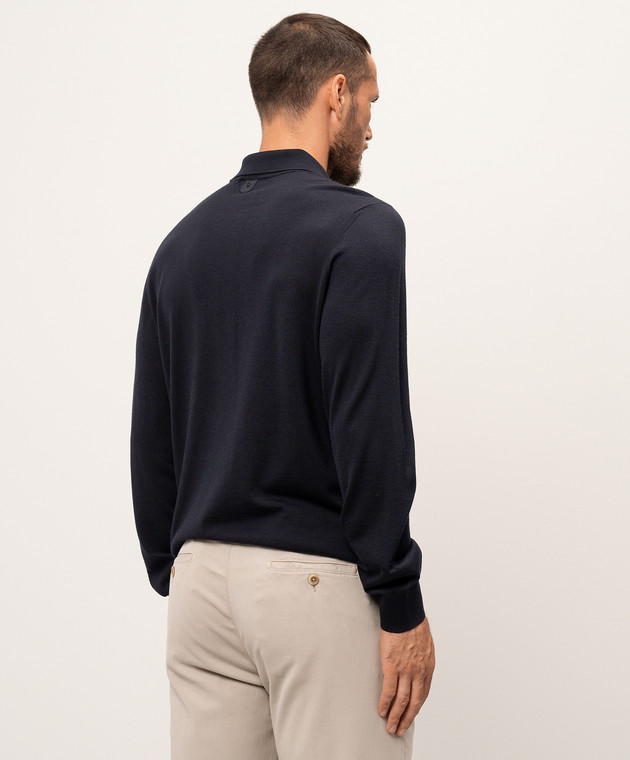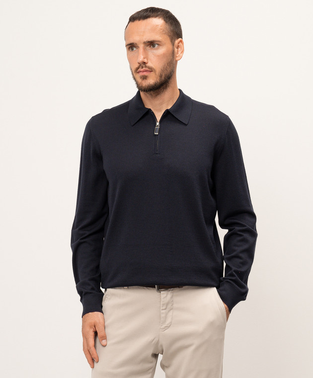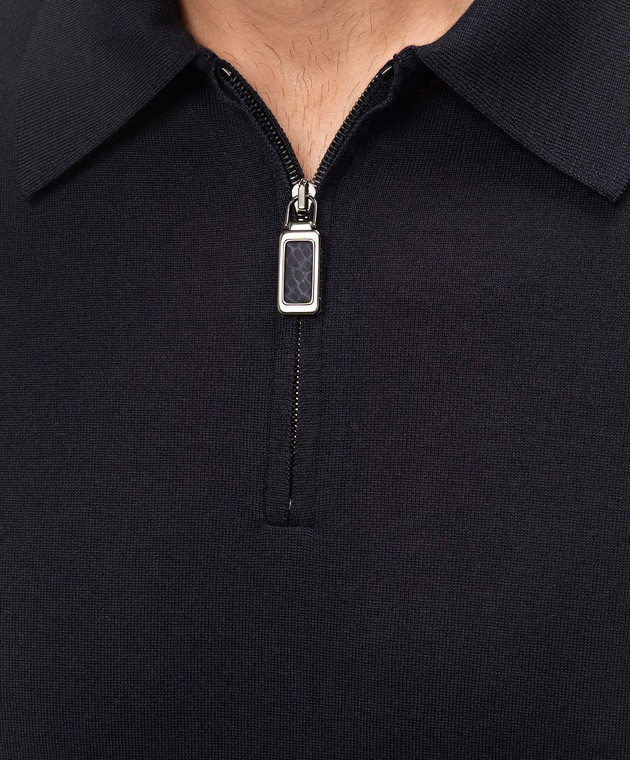 Синее поло из шерсти и шелка со вставками из кожи крокодила