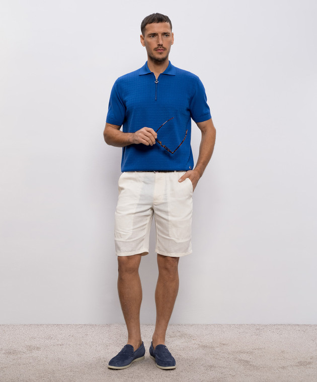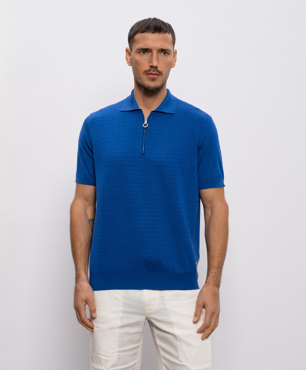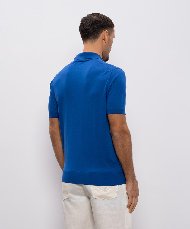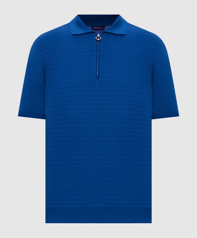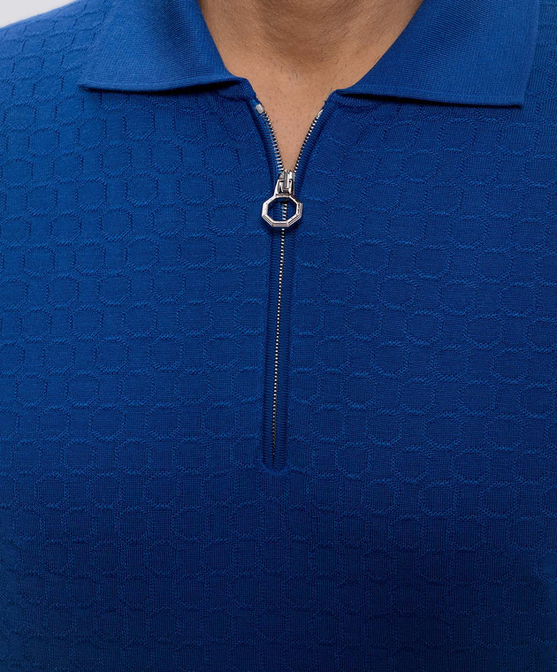 Синее поло из шерсти, кашемира и шелка в узор