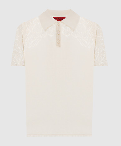 Синее поло с ажурной вышивкой