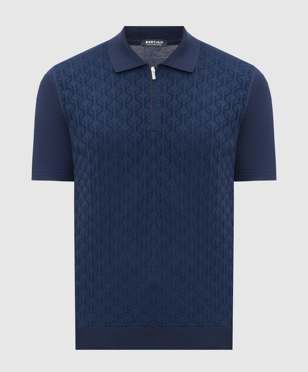 Синее поло с шелком в узор