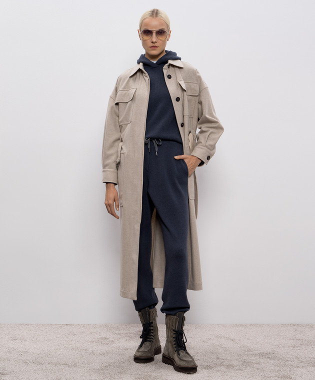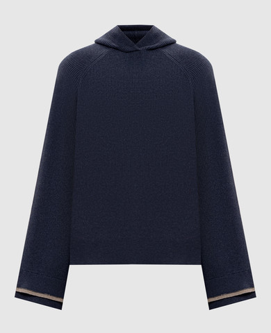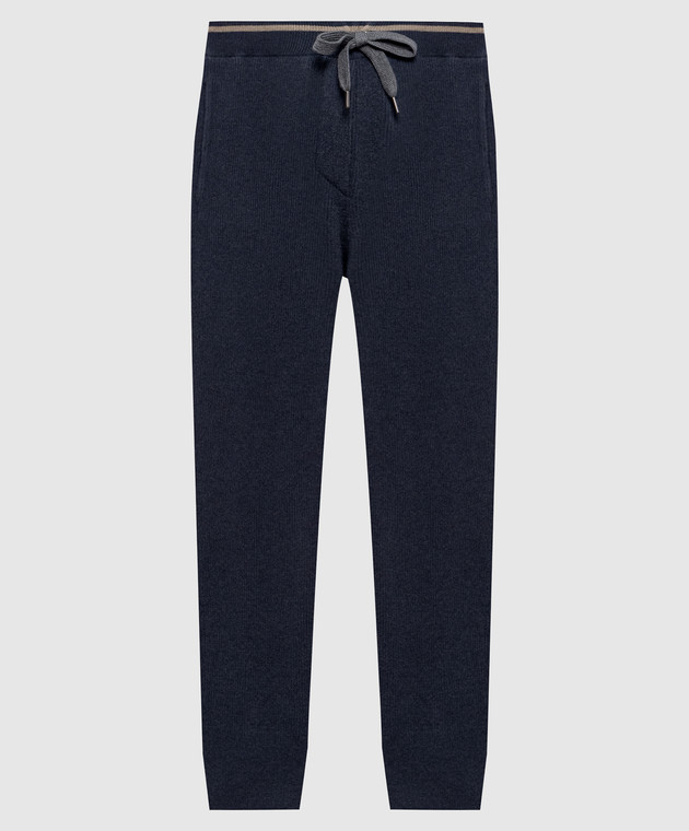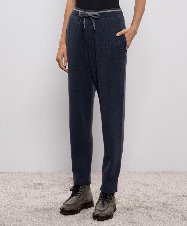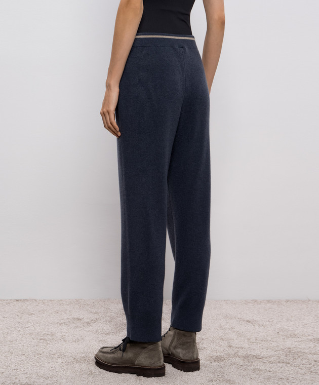Синие брюки из шерсти, кашемира и шелка в рубчик