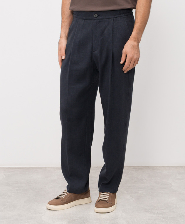 Синие брюки с льном