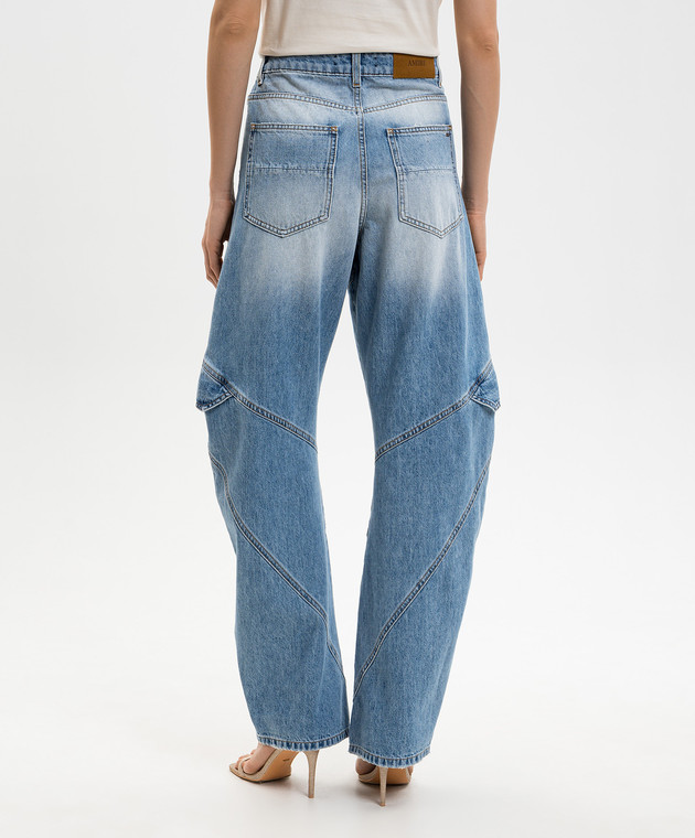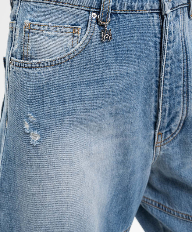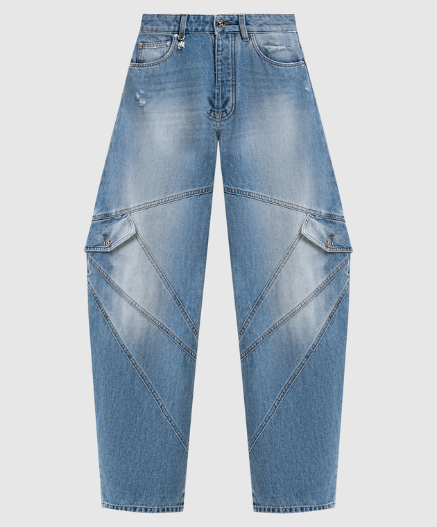 Синие джинсы-бананы с эффектом потертости