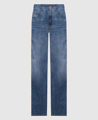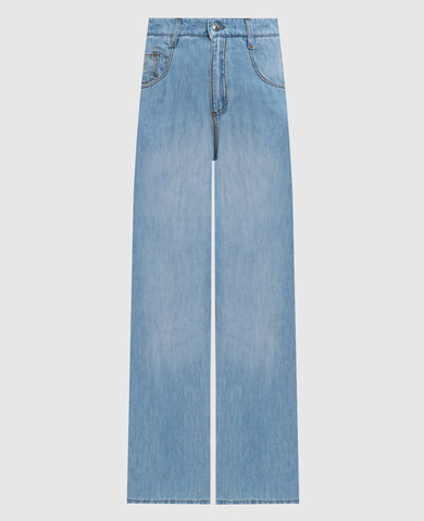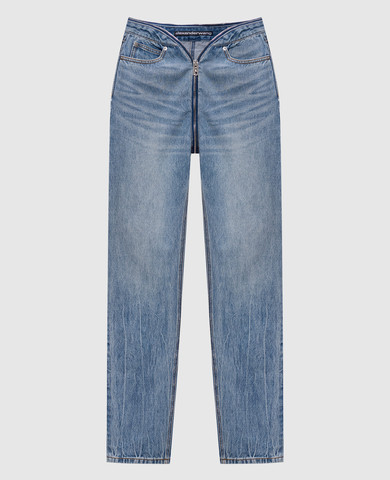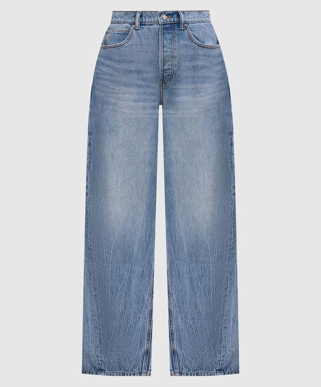 Синие джинсы-бананы с прорехами