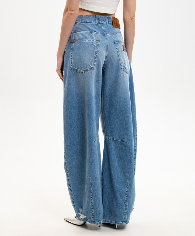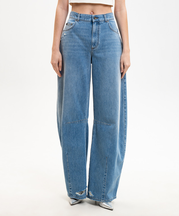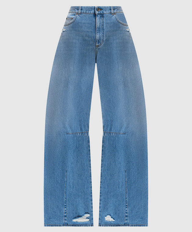 Синие джинсы-бананы с прорехами