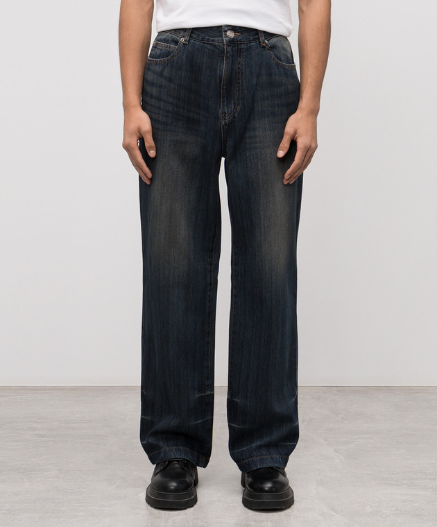 Синие джинсы с эффектом потертости