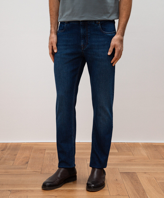 Синие джинсы с эффектом потертости