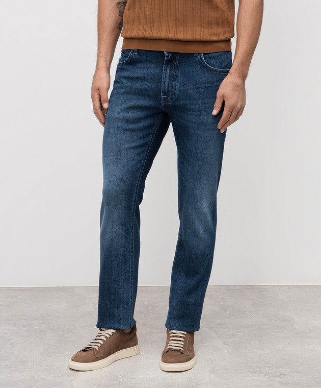Синие джинсы с эффектом потертости
