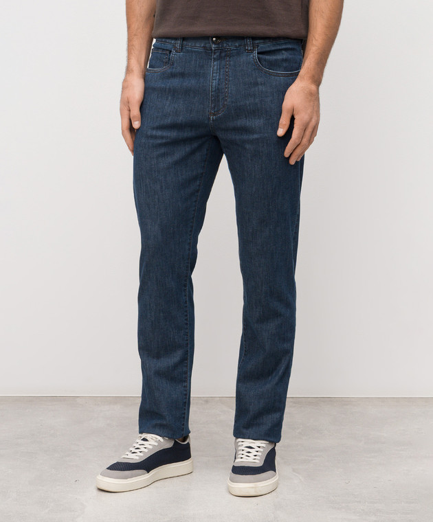 Синие джинсы с логотип патч