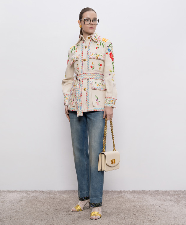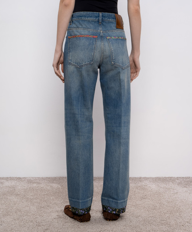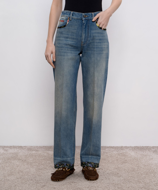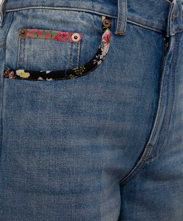 • Декор эффект потертости, кожаный патч логотипа, окантование в цветочный принт.