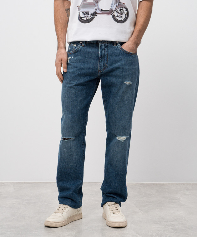 • Декор эффект потертости, прорехи, кожаный патч логотипа, нашивка логотипа, металлическая пластина с логотипом Dolce&Gabbana