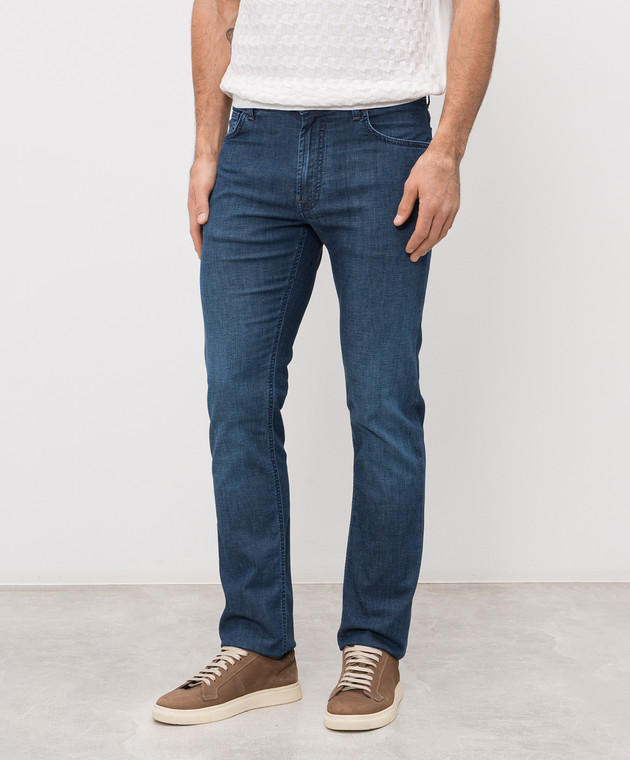 Синие джинсы с вышивкой эмблемы