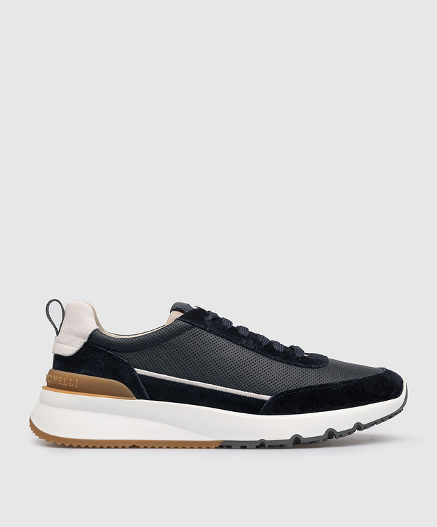 Синие кожаные кроссовки с логотипом