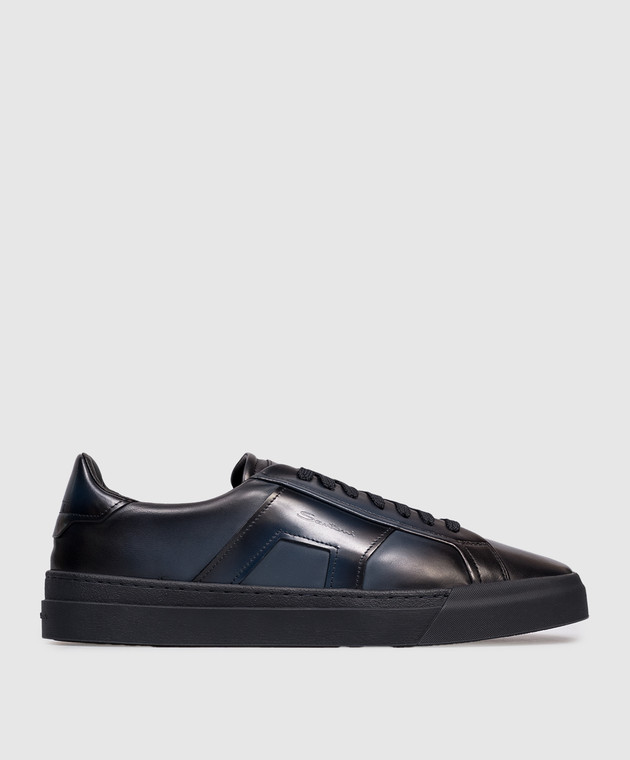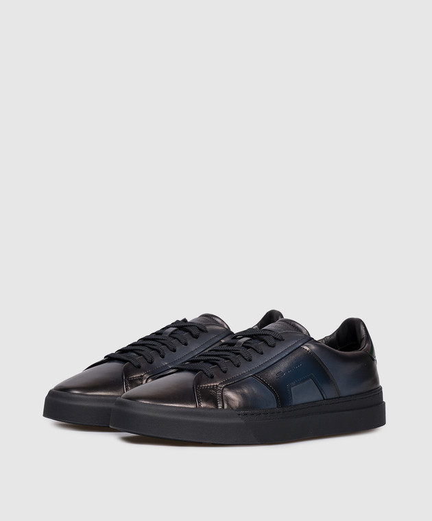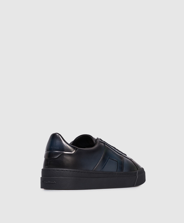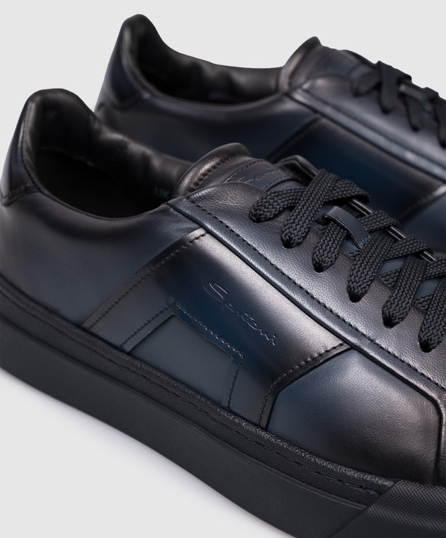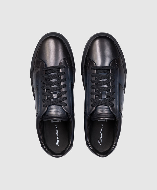 Синие кожаные кроссовки с логотипом