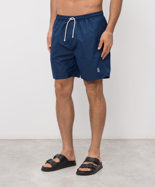 Синие шорты для плавания с вышивкой эмблемы