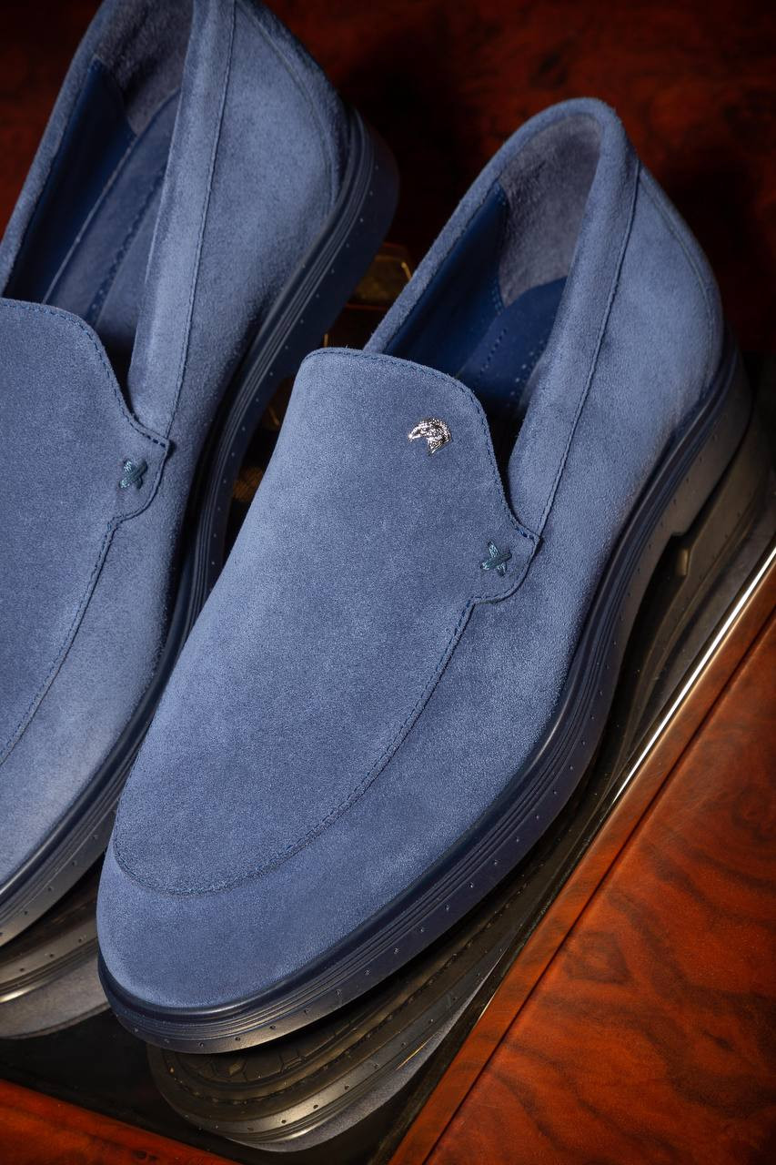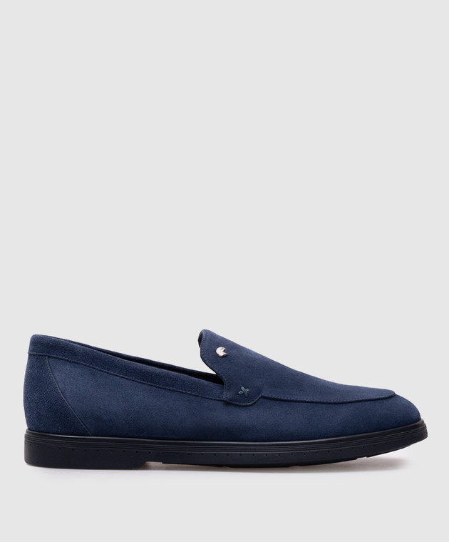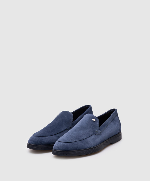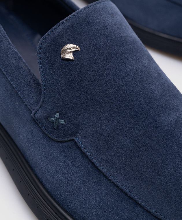Синие замшевые лоферы с эмлемой