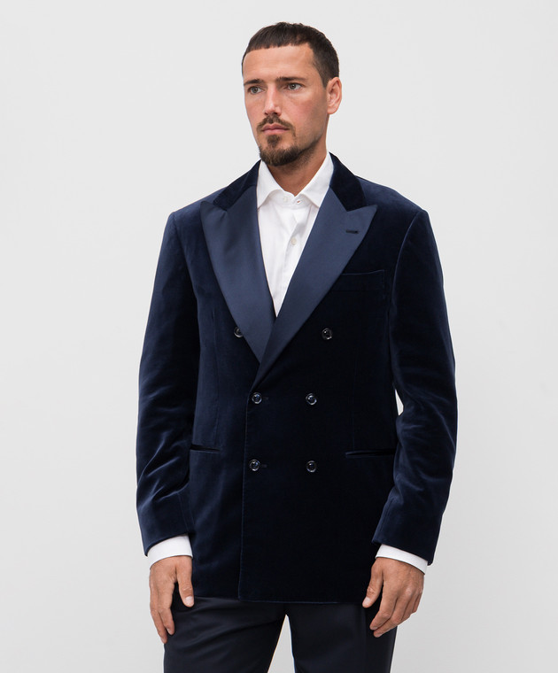 Синий бархатный пиджак с шелком