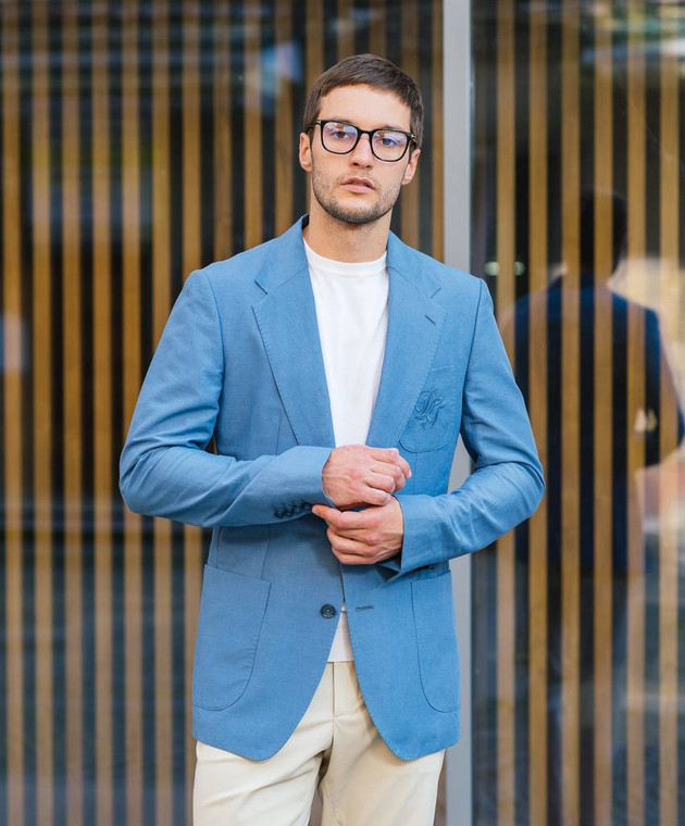 Синий блейзер с вышивкой логотипа