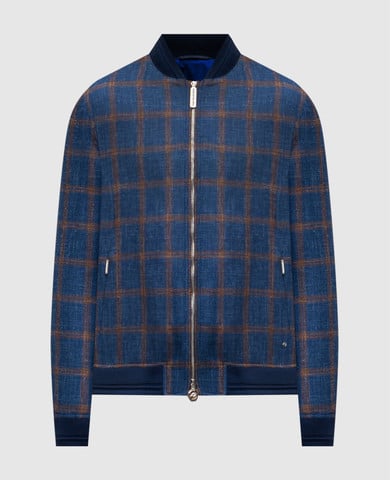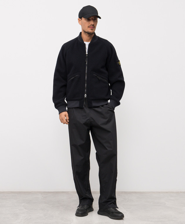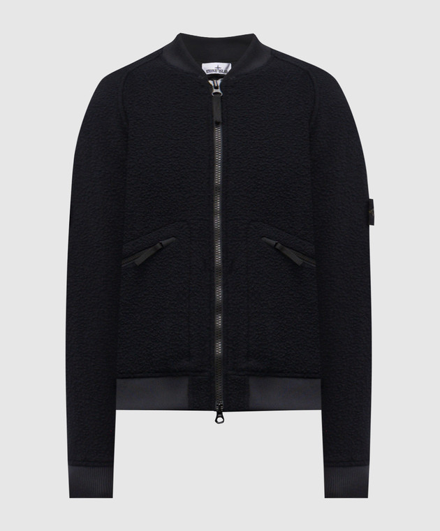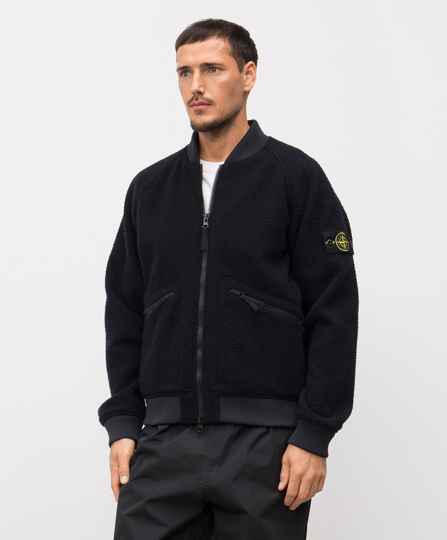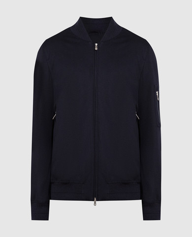 Синий бомбер с шерстью с логотипом