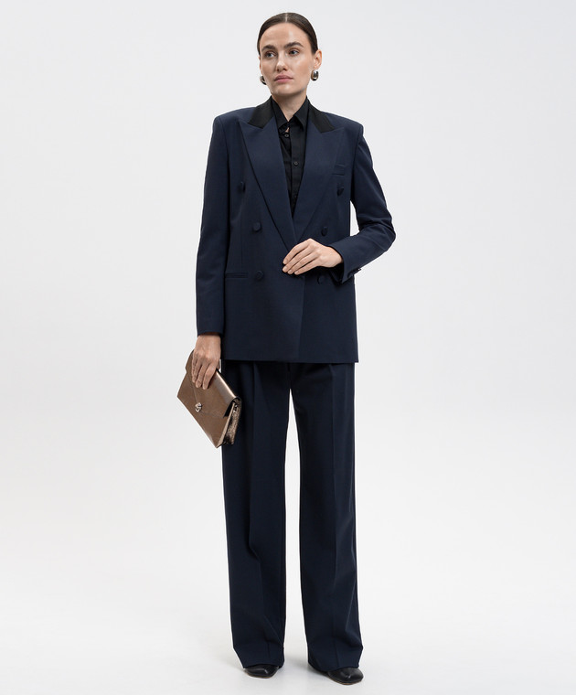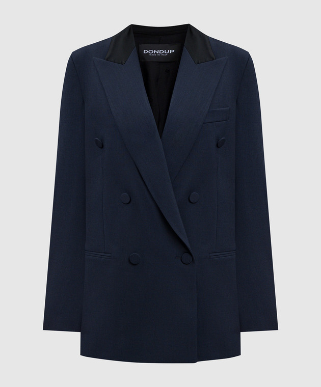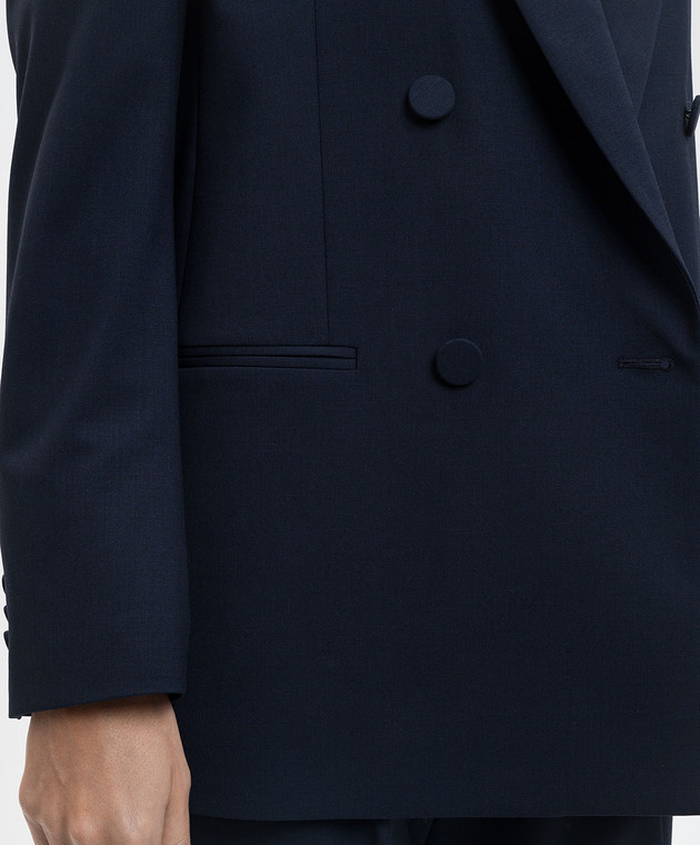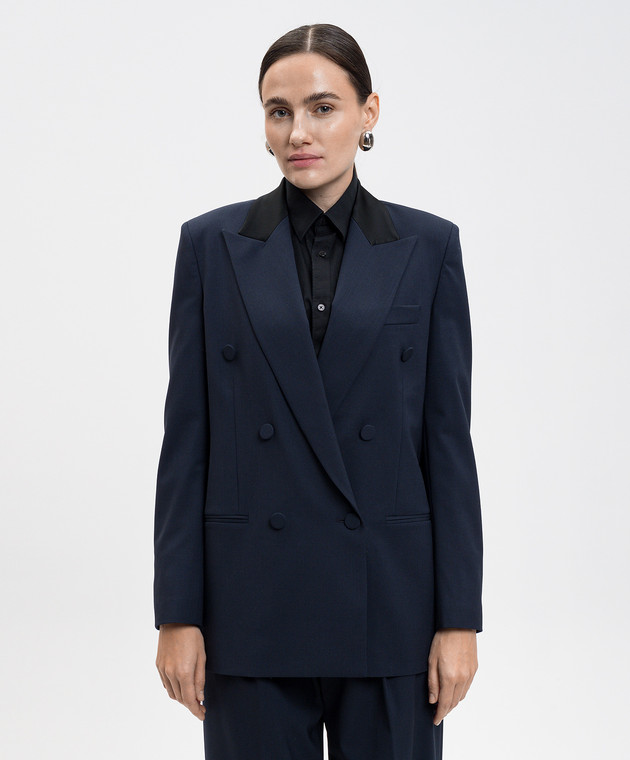 Синий двубортный жакет из шерсти