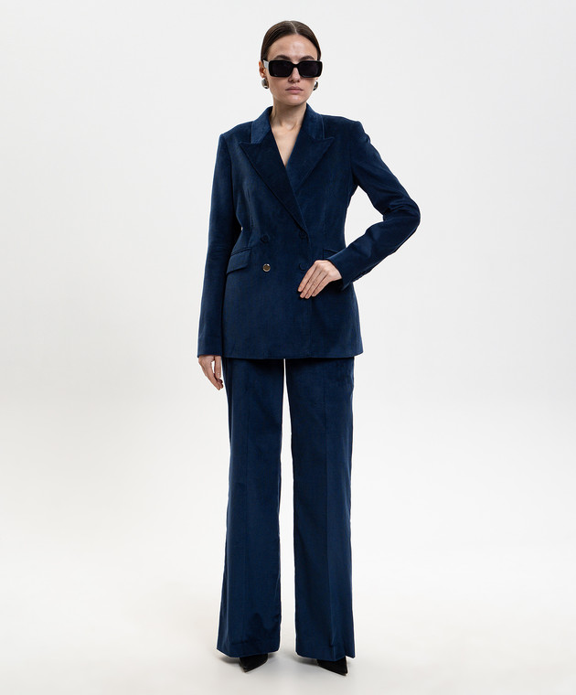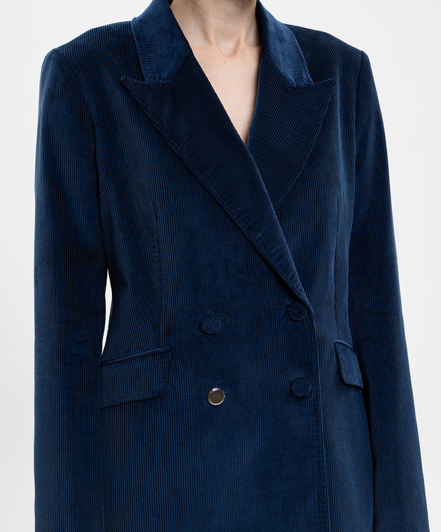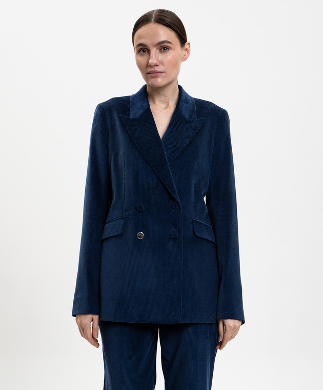 Синий двубортный вельветовый жакет Angela