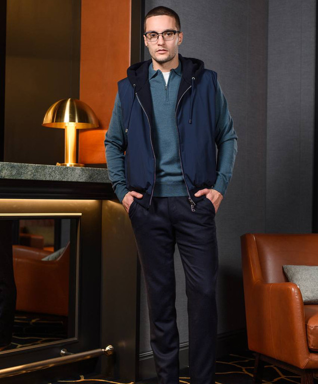 Синий двухсторонний жилет с шерстью и кашемиром