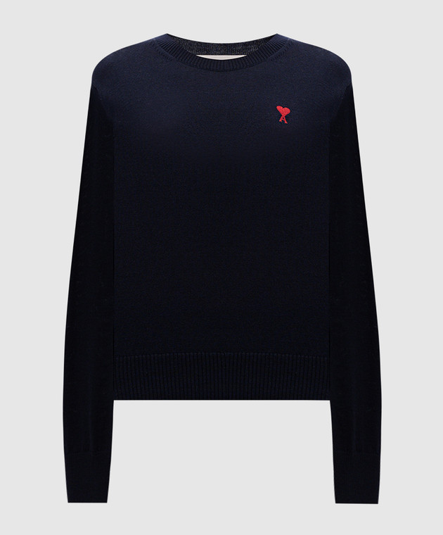 Синий джемпер из мериноса шерсти с нашивкой логотипа