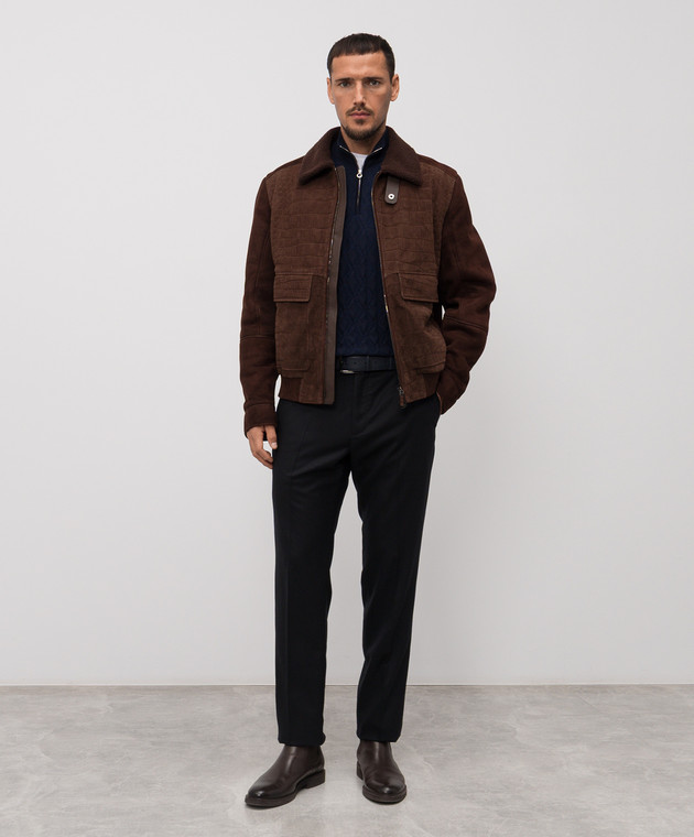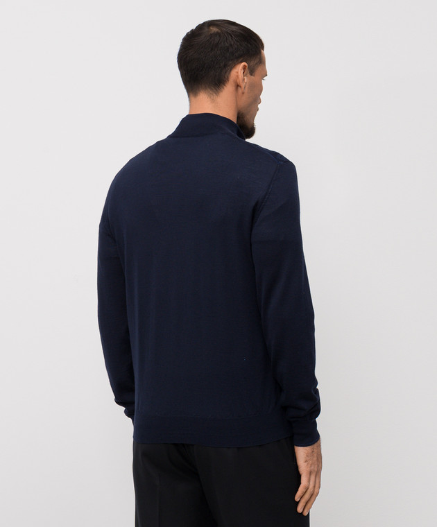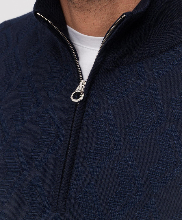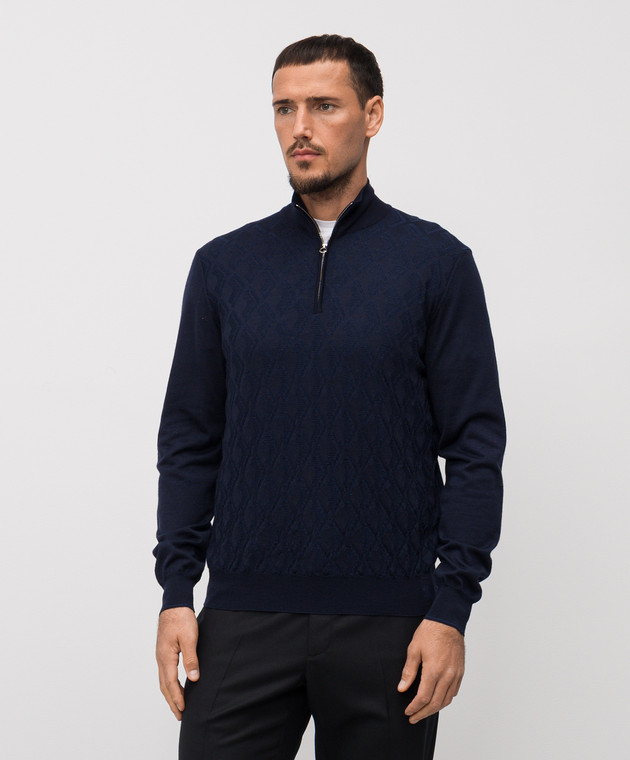 Синий джемпер с шерстью, шелком и кашемиром в узор