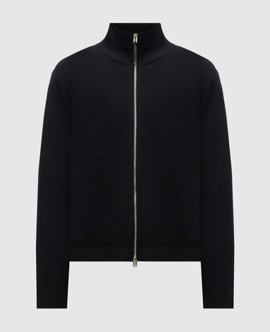 Синий кардиган из шелка и кашемира с вышивкой логотипа